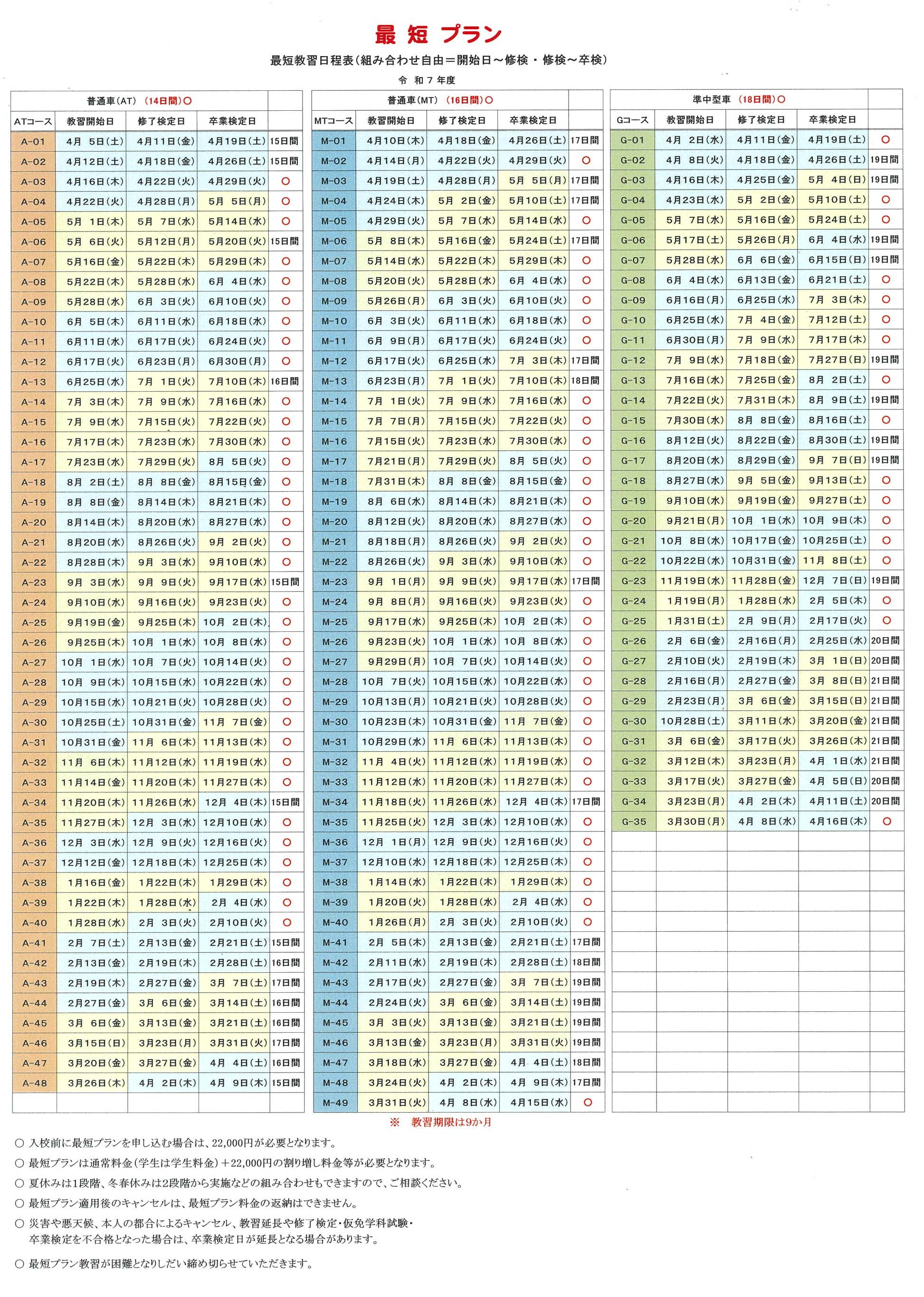 入校日から卒業まで、ご自分に合わせたスケジュールを組むことができます。