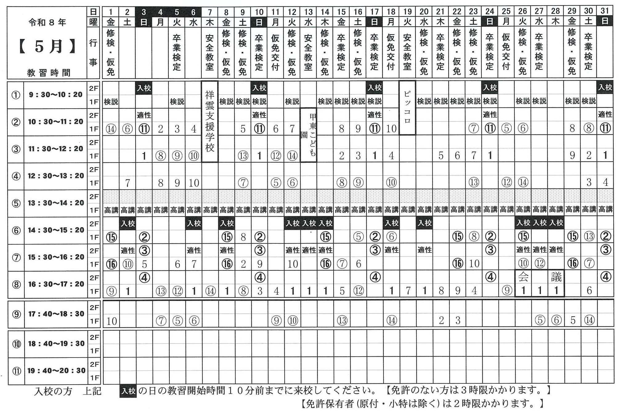 5月の予定表を更新しました。教習案内にてご確認ください。